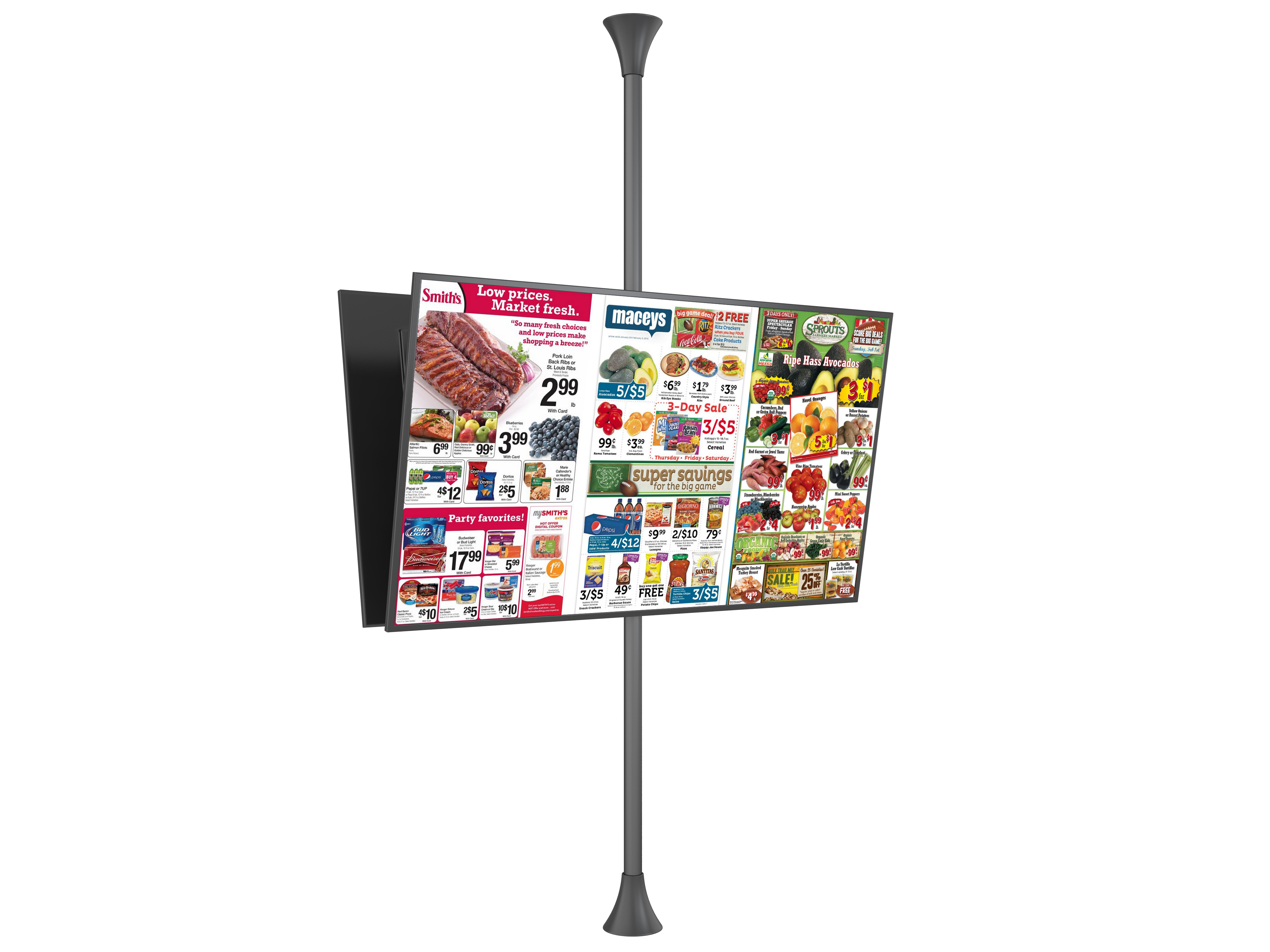 Feature: Cut to Size Commercial Floor to Ceiling TV Mount Portrait or Landscap 42″-65″