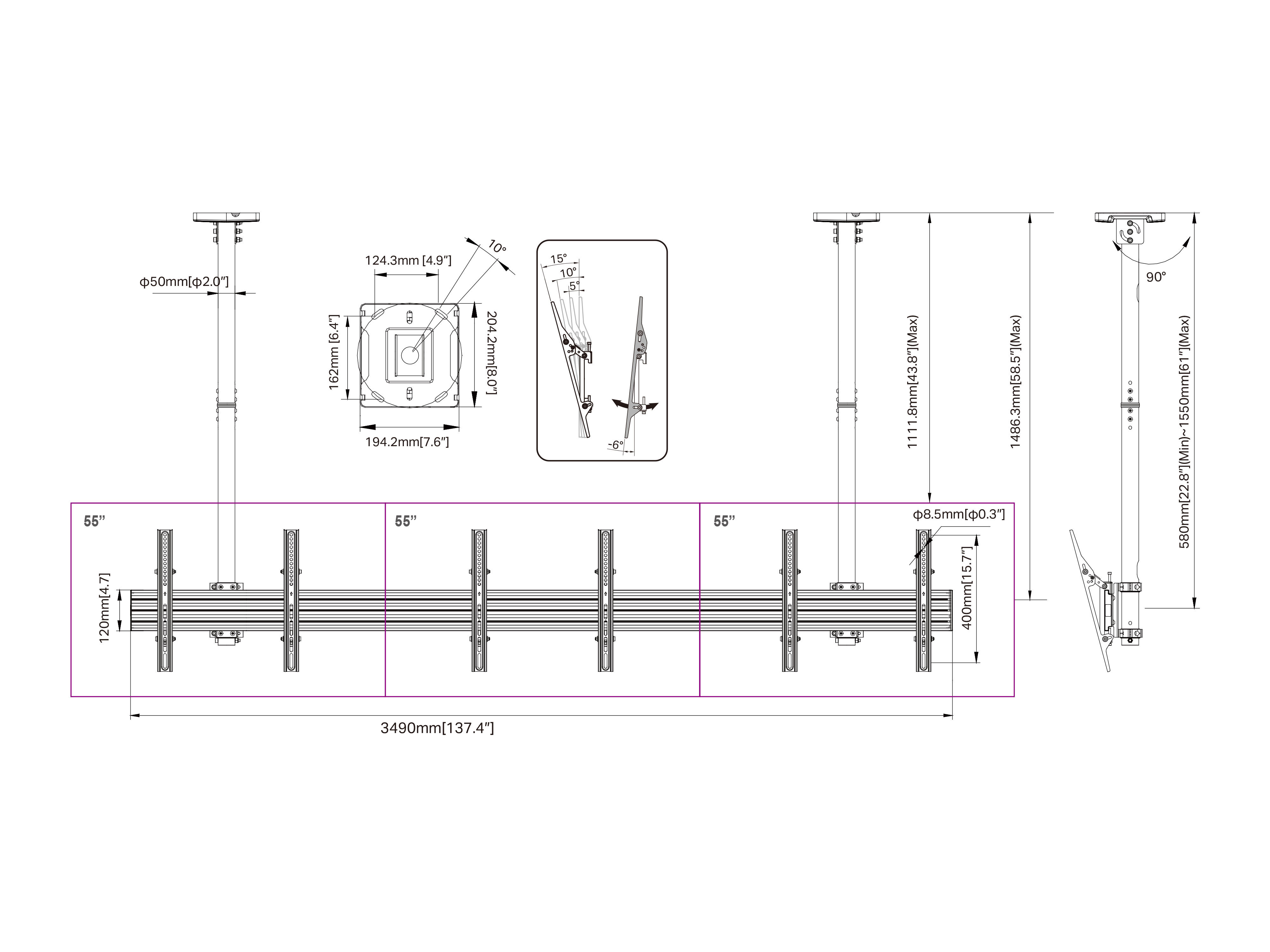 Menuboard Ceiling Landscape or Portrait 3 x screen 32″-65″ Model: GKV-603C